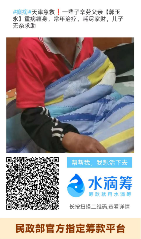 水滴筹 天津急救❗一辈子辛劳父亲【郭玉永】重病缠身,常年治疗,耗尽家财,儿子无奈求助
