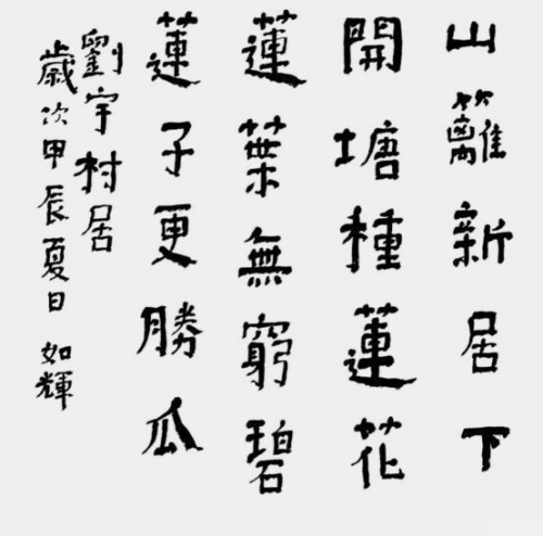 艺术的共性,在于形式和情感互动。书法家通过字形组合,而不是语义构造实施创作。其情感主要在点画、章法、结体、款识、钤印等组合关系中得到体现。而对这些关系的处理表现即可看出书法家的修养和素质。“谁有笔如椽,管领芳菲景”(潘天寿诗)。我以为,在提升书画家的修养和素质上,我和如辉永远在路上。如辉正当盛年,聪慧过人,且勤勉向学,创中国书法左笔书法之新精神,开中国书法左笔书法之新意境,是所望也,是可望也。