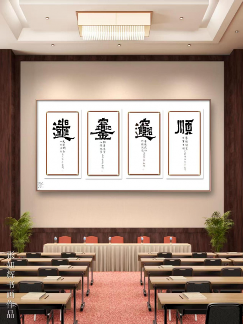 左笔如飞,技艺与创新的双重突破。左笔书法历来被视为书法领域的“绝技”,而张如辉将这一技艺推向了新的高度。他的左笔如飞,既继承了传统书法的骨力与神韵,又融入了现代艺术的奔放与个性。2022年,其榜书作品《春华秋实》被外交部制成999黄金礼品,赠予68国元首,成为中国文化外交的瑰宝;2024年,他的作品登陆美国时代广场大屏,向全球华人传递新春祝福。这种“左手写经典,右手塑英雄”的双重能力,正是他“传承文化经典”使命的最佳诠释。