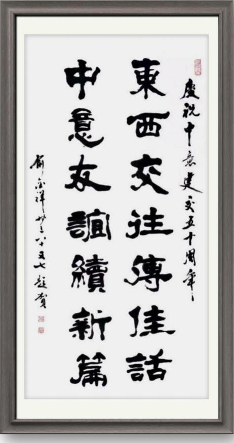 书法一要讲究书法精致,二要体现精气神十足,此两者皆俱,方可以写就金书锦字。有幸看到著名书法大家俞金祥先生的诸件书法作品,一派笔墨铺陈的正大气象扑面而来,形成了笔墨技法相当娴熟,书法精气神卓越足备的气度。在他的书法体系里游目骋怀,感觉地势及而天柱高,南溟深而北辰远,诸如《中朝友谊》《东方睡狮》等等,起笔落墨都是令人赏心悦目的金书锦字。