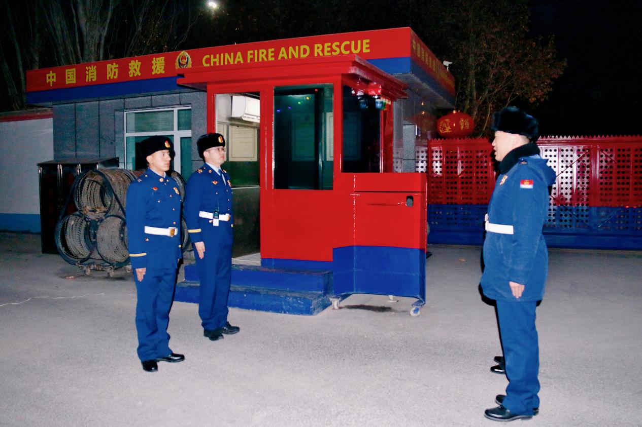 “哨兵同志,下哨时间到,请下哨!”除夕之夜,万家灯火团圆时,该大队党员干部纷纷走上执勤哨位,以普通消防员的身份开始执勤,主动替消防员站上一次“除夕哨”、给人民站一班“跨年岗”、为祖国守一岁“万家灯火”。