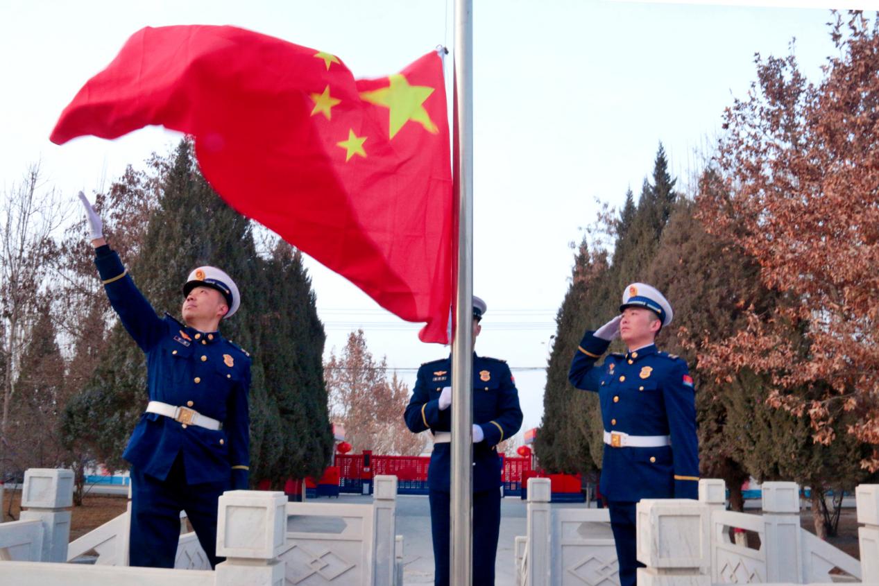 鲜艳的五星红旗,在朝阳的映照下,格外耀眼,就像一颗火热的心,照亮了整个营区,也照亮了每一名指战员的心田。大家纷纷表示,新的一年里将以更加昂扬的姿态完成好各项任务,在应急救援征程上奋勇拼搏、砥砺前行。