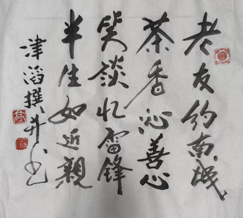 4. 技艺与融合:我还大胆探索材质创新,使用牛奶、咖啡、普洱茶进行书写,追求独特的“茶情墨趣”。