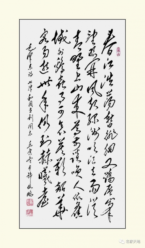 中国现代书画名家流派传承学术报告 笔作飘风骤雨 墨写落花飞雪 许体草书大家许俊鹏 颜真卿书论有言:草书兴起于汉代。杜度、崔瑗写得相当精妙。到了张伯英,尤其擅长草书创作的美伦美幻。后有书论言怀素张旭草书“以癫继狂,谁曰不可”。再到近代以林散之当为草圣。当代草书圣贤,则由许体草书创建者许俊鹏为领衔。他把中国草书艺术推上了时代最高峰,呈现出草书创作玄机,可以代代相传的功绩。从这个意义上来讲,许俊鹏先生创建许体草书大派,不止于个人书法修养的非凡建树,也是当代中国书法艺术美学可以令后之览者,亦将有感于此书的春秋影响力。许体草书归于草书龙脉正宗,成为东方审美的时代镜像! 许俊鹏先生创建许派草书,之所以大著其名,大受敬仰。在于他的书法根基特别正宗。自幼觉悟书道,书法历练有博涉多优的宽度,取法为上,以二王法帖汲取书法进级的正能量,写得一手金书锦字,专业影响力卓越非凡,是经由扎实的碑帖历练而成就的一代翰墨圣贤。在他的书法作品里一一观赏,有碑字的风骨,有帖学的风度,写得完具“中和”之妙,是其书法精神的内涵,这种笔墨内涵完全符合中国传统美学思想,所以从精神层面他的书法完全皈依了名门正派,是书法文化亘古传承的中流砥柱。 其书法作品一经出场,就有正大气象,笔里有墨,墨里有笔,以笔墨塑造“中国梦”,可以传达出大国崛起、文化复兴的伟岸力量。无论是笔法之精湛,还是情感之结晶,许俊鹏的书法创作与磨砺都走在时代的前列,没有书奴的唯唯嚅嚅,也没有书匠的拘泥不展,极有传承与创新的双重示范价值。无论是从审美的角度来看,还是从学术的层面来看,他的草书都可以写得恣意洒脱,经过刚柔相济的笔墨运行,写出了特别有文人书法的意象。既是晋韵宋意的一脉相传,也是抒情畅志的个性表达。这才是草书歌诀的正确打开方式,也是当代草书可以不负时代,以虬龙蜿蜒的姿态走向未来的精彩导向! 笔作飘风骤雨,墨写落花飞雪。观赏书法品味人生,在许俊鹏先生的许体草书里一件一件品读,从《龙》书天下的精气神,看到《紫气东来》的文化魅力,还有磅礴的《毛泽东诗词》,感觉他的书法作品切准了当代审美的主流脉搏,拥有可以装饰万家屏障的新力量。草书曾经以“少数人”为观赏对象,这是草书文化影响力需要打破的边界。当下,在家居厅堂、文化展馆、机关机构、风景名胜等等地方都可以发现许俊鹏题写的草书作品,感到他的书法格局已经完全打破了草书面向“少数人”的旧有边界,成为当代所有书法艺术审美者都可以一睹为快的时代文化。书法创作有许派之创新,文化弘扬有时代之功勋,当代草圣许体为功,艺术丰碑贤家确立! 中国现代书画名家流派传承学术研讨会专家组代表:
