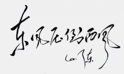 观陈万全先生作品,师于“毛韵”却自出一格,或豪迈、或委婉、或奔放,时如风雨雷电、又似水流花开,有悠悠天地肝胆照、大泽龙蛇腾云起之气势。在墨饱酣畅间更显力透纸背的功底。写字比画画难!古语云:十年学写字,三年学画画。画画有很多色彩,形象,参照物,光线,距离等许多元素,而写字只有笔划和文字之间的关联。字由心生,现端于笔。在长期的实践中,陈万全先生以自我性情溶于笔墨驾驭。结字隽永,章法谨严,排列布局疏密有致,错落相谐,刚柔并济、浑然一体,观者能充分感受到绵绵无止的字韵“筋脉”之通贯。在感受陈先生之笔精墨妙的同时,亦祝愿他在中国书坛获得更为辉煌的成就。