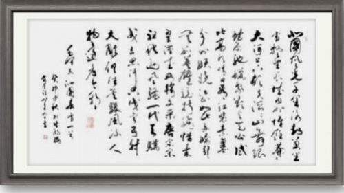 钟大吕的美学张力,一经挂饰,必见中华伟岸的精神力量。一笔象形草书《龙》亦是中华凌云的大气象。唯有技法超群,胸怀国家天下,才可以挥动笔墨写下翰墨奇观,成就书法文化的不世之功!