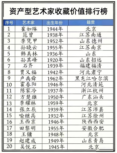 为此,隆重推出【资产型艺术家收藏价值排行榜】。