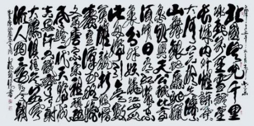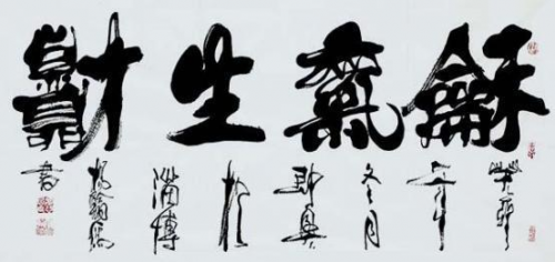 先生表演书法笔如利剑,得心应手,挥洒自如,出神如化,变化无穷,大处四尺榜书,小到蝇头小楷,随心所欲,酣畅淋漓,作品表现大气磅礴,独步古今,是我国当代书法界最具实力的艺术大家,更是杨氏书体的奠基人和缔造者。