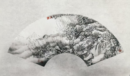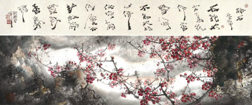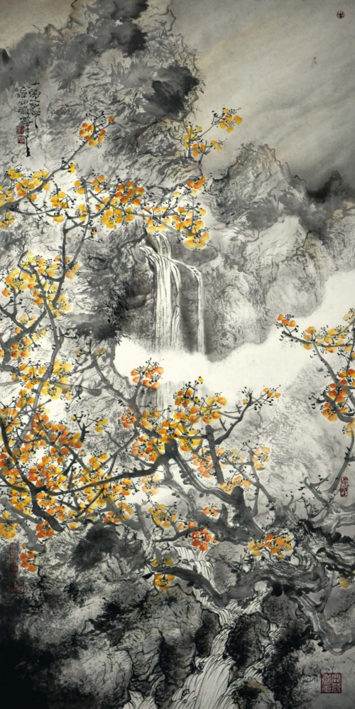 在中国画的谱系中,梅花与山水,向来是两个丰饶而独立的世界。一个是以枝干墨韵承载天地清气的精神符号,一个是以丘壑造化寄托林泉之志的心灵空间。而蒋开发先生的画作,正在于此二者之间,架起了一座气韵相通桥梁,开创了一种独具风貌的“梅花山水”意象,将梅之风骨融入山之魂魄,营造出一片超然物外的清刚之境。