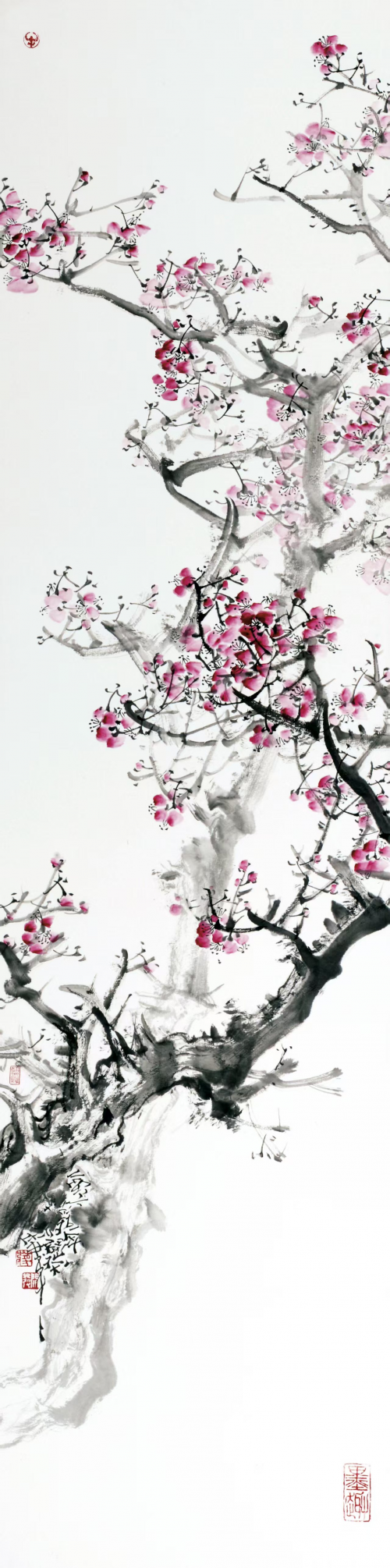 让我更高兴的是,开发始终不断地充实和改进自己的风格。最近看到这批梅花,我觉得画得很灵动,传统的功夫、传统的一些因素以及他自己个人对自然的一些看法,都比较好地融合在一起,已经画得很娴熟,有的画得非常精道。