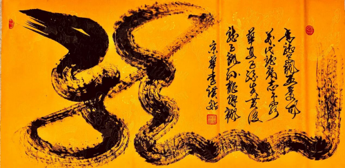 李广效老师的作品神韵通达,气势宏阔,他的作品既有传统的功力、又富有时代气息,既有山东人性情中的质朴、又有齐鲁大地的人文厚重,下笔沉稳,运笔苍劲,行笔果敢,收笔委婉。一笔龙是李广效在传承书法文化上的独创作品,龙的精神是中国五千年伟大文明的象征、在书写龙字时,即尊崇名家之长、又不拘一格大胆创新,有所创造,独树一帜。龙字在他的笔端下熠熠生辉,灵动飞扬,似空中飞舞气宇轩昂地书写中国精神、龙的血脉。