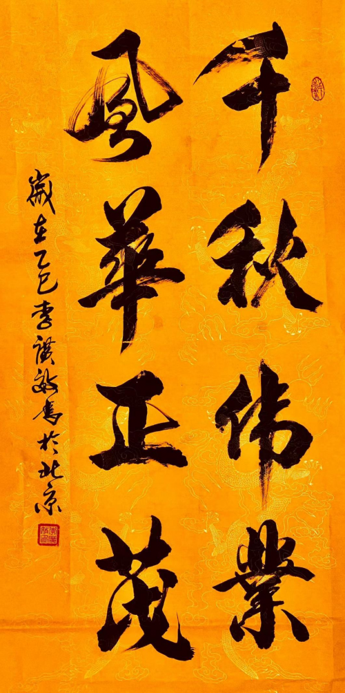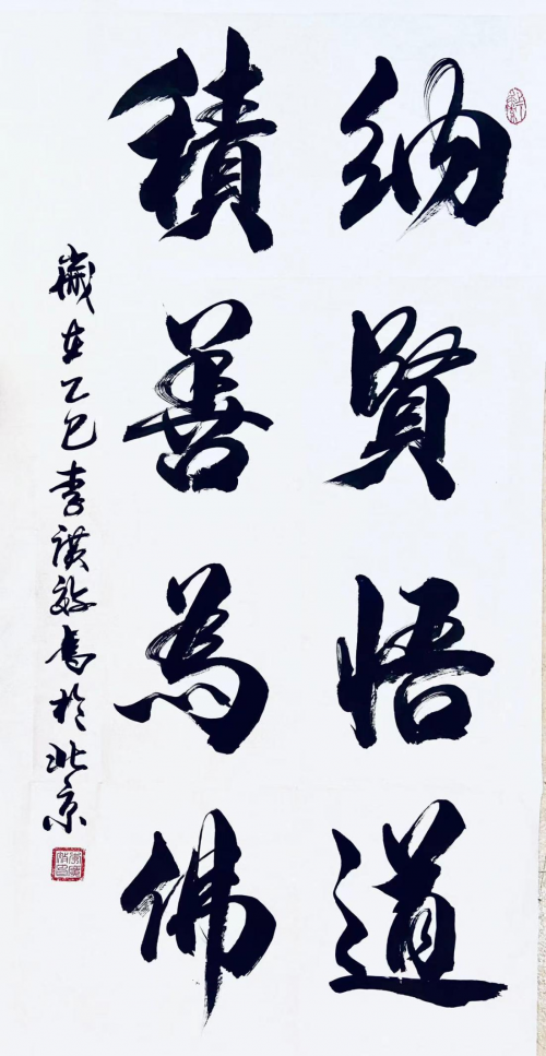 李广效在传承与创作中彰显着东方美学的时代力量、他以中华一笔龙书写中国精神,以寿在福中传递人间温情,以童子拜佛栓释信仰力量