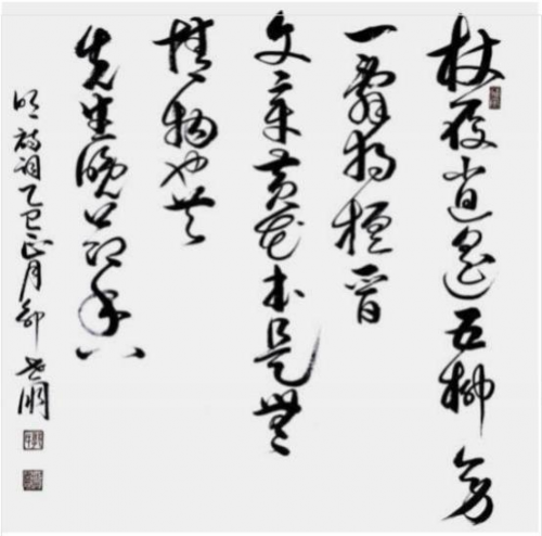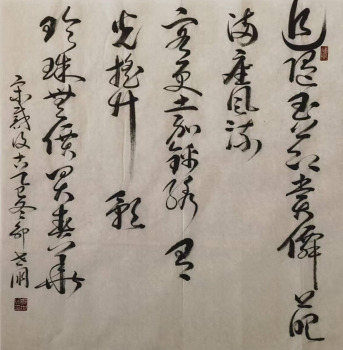 郭世朋先生不仅能在书法中体悟传统风韵,他更能将草书展现出一股属于当今时代的艺术面貌。并且无论是在单纯的技法层面上,还是在丰富的精神层面上,他皆是体现出完美的文人骨气与风范。文脉正统,名家风范。
