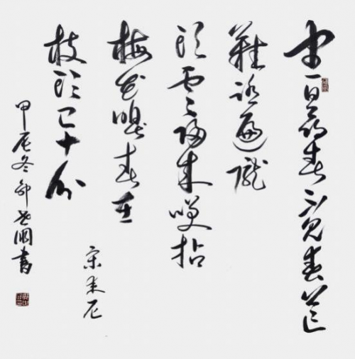 今观郭世朋先生书法,是谓深合于人品佳德,方能做出如此高妙翰墨。其书能于疏淡中见文气,又能于飘逸中见淡泊,具癫张而不显浮躁,具狂素而不具浮滑。实乃脱俗致雅也。书艺爽朗,风骨奇绝。以风骨神气为笔,以遒健致雅为墨,笔墨相承,意韵相加。
