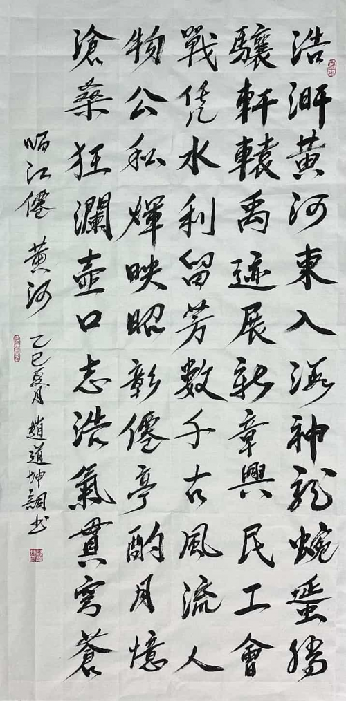 赵道坤,中国国礼艺术家,世界文化名人。笔名:华不注诗坛,山东济南人,1956年12月生,民族:汉。山东大学:历史、山东师范大学:汉语言文学专业毕业,鲁迅文学院高级班结业,一级书法师,高级工程师。国务院政府特殊津贴专家,文旅部“文旅艺术数字资源库”首席艺术主席,CCTV央视书画频道签约艺术家,中国书画家研究会专家顾问,中国东方文化研究会书法研究员,中国通俗文艺研究会高级研究员,中央新影中学生频道《艺术之旅》艺术顾问,香港电视台签约艺术家,世界非物质文化遗产研究院副院长,亚洲文化网首席艺术主席,中国企业文化促进会中小企专委会高级艺术顾问,中国散文学会会员,中华诗词学会会员,中国楹联学会会员,人民艺宣网文创部通讯员,中宣盛世文化艺术交流中心会员,中国诗歌报会员诗词创作室副主编,智慧国潮(北京)文化产业发展中心会员。国委对外宣传办公室授: 2025年度“十馆相传·国际馆藏文化艺术外交官”。小说、散文、诗词、书画、歌曲,多领域艺术家。