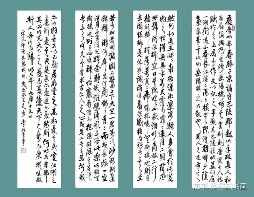 行草 岳阳楼记四条屏