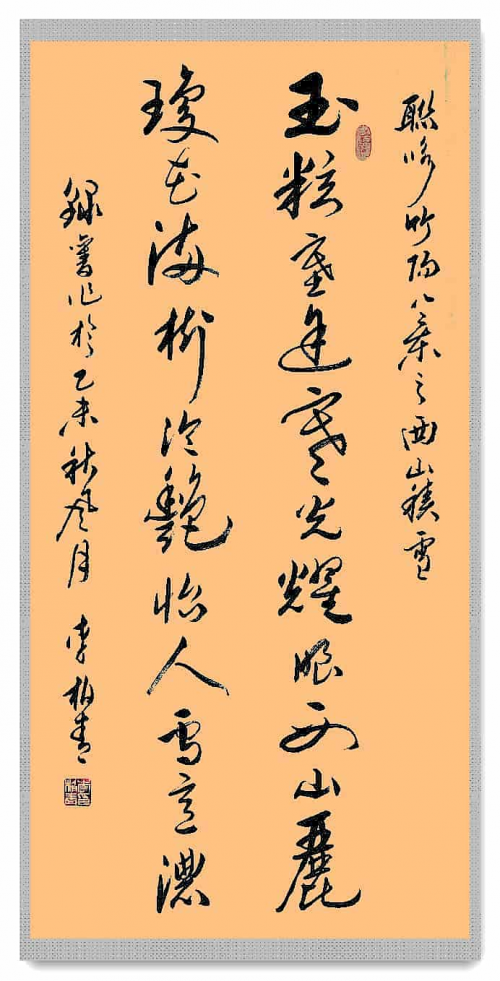 李柏青先生的书法艺术扎根于深厚的传统土壤。作为国家高级书法师,他深谙"取法乎上"的道理,数十年来潜心研习历代碑帖,从二王的秀逸到颜柳的雄强,从米芾的恣肆到王铎的奔放,无不涉猎钻研。这种对传统的敬畏与学习,使他的作品在笔法、结体、章法上都体现出纯正的中国书法基因。观其作品,线条如屋漏痕般自然凝重,结字似千年古木般稳健舒展,墨色若云霞变幻般层次丰富,处处可见传统经典的内化与再生。尤为难得的是,他并未止步于形似,而是通过"入古出新"的创造性转化,使古典笔墨焕发时代生机,形成了"崇尚传统,自成风格"的艺术特色。
