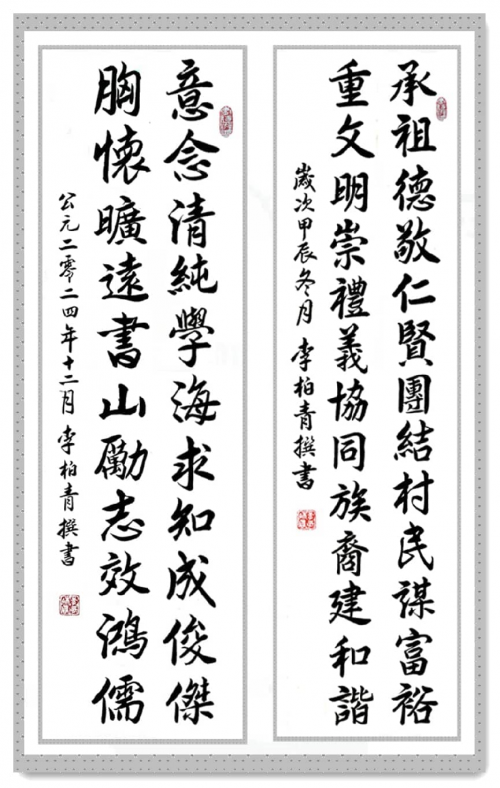 行楷 为某村文化中心撰书对联两副
