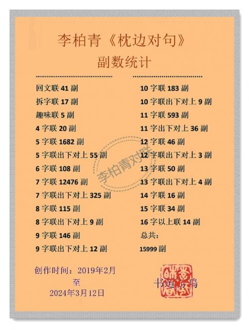 李柏青创作枕边对句副数统计