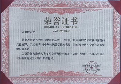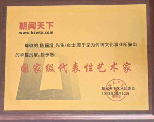 陈福增 1965 年生,黑龙江省海伦市工商银行干部、大专学历。中国民主促进会会员。清华大学美术学院客座教授、国际名人百科主席、中国翰林书画院副院长、中国通俗文艺研究会理事、中国书画产业研究基地专家组成员、中国东方文化研究会高级研究员、国家一级美术师、国礼艺术家、国宾礼(特供)外事管理中心、国宾礼艺术鉴定评审委员会、国宾礼文化市场保护委员会特邀艺术顾问、北京当代环球书画院艺术顾问、中国艺术名家档案馆特邀顾问。世界首创“筷雕人体艺术”,在绥化市科技馆和海伦市博物馆展览收藏,入选《绥化市首批非物质文化遗产》。中国未来最具投资价值艺术人、中国当代百名最具影响力书画家、入选《世界艺圣》,获第二届世界文化奖金奖、授予世界艺圣荣誉称号、中国文化报道网授予中华文化大使、“一带一路”-引领中国走向世界的艺术大师专题报道、《一带一路》世界高峰论坛优秀书画名家特别推荐、入选《一带一路辉煌中国》、入选《中国艺术名片》一带一路文化交流大使特刊、孔子六艺诗书传家一代筷雕宗师专题报道,中国-塞拉利昂建交 50 周年艺术交流庆典(塞拉利昂大使馆)、书法和筷雕作品在迪拜国家电视台播出、中国当代艺术名家纽约时代广场视频展播工程、庆祝中法建交 59 周年《一带一路》中国文化走向世界--特别推荐艺术家、走向世界的艺术大家-中华历史遗产最美代言人、中国艺术名家档案馆授予中华艺术大家、国家级代表性艺术家、中国优秀艺术家、网络文化建设艺术星级代表人物、社会艺术风云人物、500 强重点企业推荐艺术家、企业文化传播大使、中国当代世界级艺术家、国际艺术巅峰人物、福布斯中国十大名人、影响世界十大金牌艺术家、全球十大风云人物、世界文化交流伟大贡献奖、当代艺术大师、中国珍藏级艺术家、联合国气候大会形象大使、中国收藏推荐艺术名家、国礼品牌形象代言人、大国-大家艺术领军人物、中国好品牌影响力人物、入编《中国文化品牌人物》、《中国艺术领袖》专刊、影响力品牌艺术家、殿堂级艺术名家、收入纳斯达克艺术品收藏推荐指南、世界级艺术巨匠、近现代艺术家最具影响力艺术界八巨头、中华文化全球推广大使、中国品牌艺术人物、入编《时代风华-当代艺坛名家研究范例》、中国艺术家欧洲线上艺术巡展、CCTV 中国国宝级艺术名家工作室、巴黎奥运中法文化交流大使、大国荣耀-时代人物、世界艺术代表人物-特别推荐艺术家、收入《脊梁战略国情公报》、中国享誉全球的艺术家、中国文化领路人、联合国推广大使、国际艺术功勋人物代表、东盟文化艺术交流大使、中国文化传世界-中国艺圣、一代宗师、当代书圣、最佳中国国礼艺术大师、中国品牌文化推广大使、中国艺坛十大功勋人物、共和国十佳艺术人物、世界艺术巅峰·十大领袖人物、世界品牌文化首席推荐官、国际金牌艺术家-世界艺术终身成就奖、全球华人十大杰出艺术家、CCTV 央视书画频道签约艺术家、全球艺术投资巅峰奖、《一代宗师》2025中国艺坛影响世界风云人物、学院艺术金章奖(荣宝斋 中央美院)、佛罗伦萨美术学院联合馆藏委书画艺术博物馆颁发特等奖、第十三届全国规范汉字一等奖、福布斯世界文化盛典金奖人物。