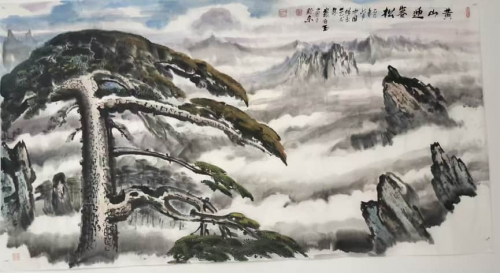 先生画山水,外师造化中得心源!有应物象形的笔墨功夫,有随类赋采的渲染气韵。骨法用