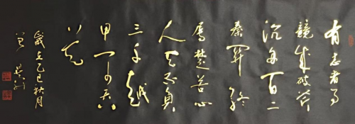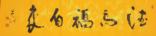 虞世南《笔髓论》云:“字虽有质,迹本无为……”笔者认为说的是字虽有俗成之样,但当书写时便可自行展现而不拘形式。中国讲求人与自然的和谐相处,民族哲学思想传统是“天人合一”,在中国多元文化中,儒家从伦理道德观方面讲“天人合一”;道家讲求精神性灵的道法自然,超脱自然;禅宗讲在与天地自然的和谐相处中顿悟。中国书法艺术充分体现了民族传统精神,儒家的“中庸”、道家的“尚自然”、“清静无为”。在历史大家的作品中,我们都能看到这些文化元素。因而在曾老师的书法创作中的不同方面、不同环节上他也很注重这方面的融合修练。所以从他的书法作品创作风格上,我们不难看出他深谙阴阳互换之道,追自然表现而不拘于死板的“依样样画葫芦”,这恰是一个真正艺术家追求大巧若才出的境界。