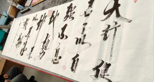 其自幼酷爱书法,以行书,草书为主体,粗细分明,书写流畅,刚柔并济,气势磅礴,苍劲有力。其书法如行云流水,给人一种赏心悦目,心旷神怡,心情舒畅和美的享受!