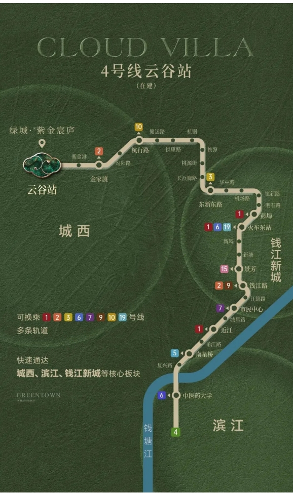 紫金宸庐所处的TOD网络,起点是云谷站地铁口,半径5公里,向四方辐射出杭州主城区的重要生活节点: