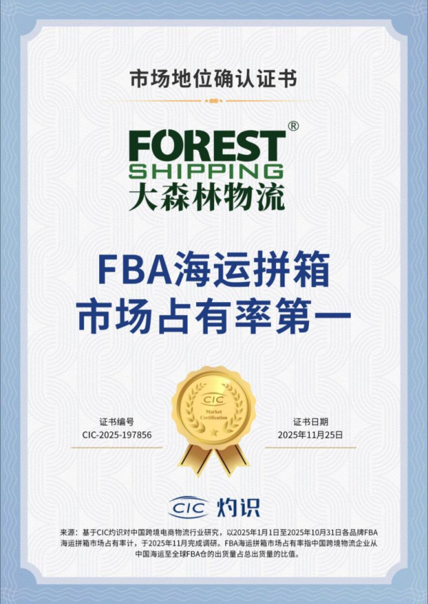 根据专业数据统计,大森林物流在 FBA 海运拼箱市场占有率位列第一。感谢各位客户朋友及合作伙伴,选择与大森林同行!